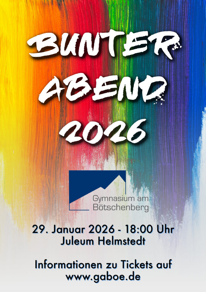 Der Bunte Abend ist eine bunte Revue aus Musik, Akrobatik, Sport und Darstellendem Spiel und gehört fest zum kulturellen Leben unserer Schule. In diesem Jahr erwartet das Publikum eine besondere Neuerung: Die Veranstaltung findet erstmals im Juleum Helmstedt statt.