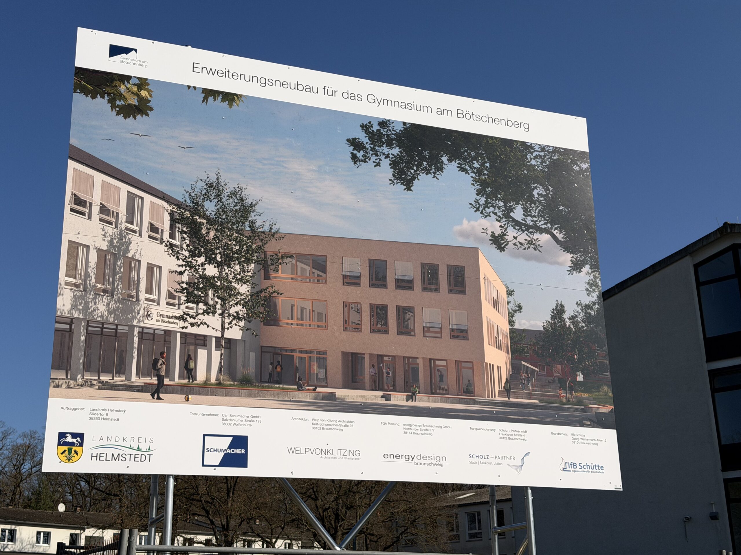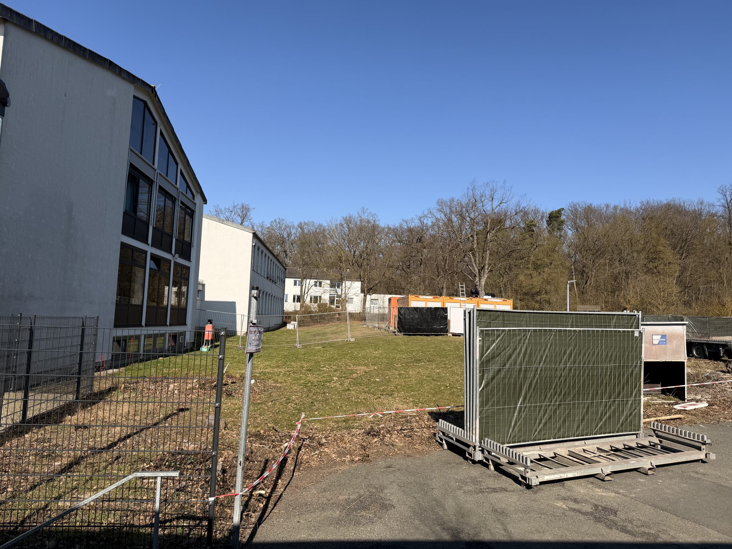 Liebe Schulgemeinschaft, endlich geht es los! Am Gymnasium am Bötschenberg sind die ersten sichtbaren Zeichen des lang ersehnten Bauprojekts angekommen: Ein Bauschild markiert den Beginn der vorbereitenden Maßnahmen, der Bereich rund um die künftige Baustelle wird derzeit eingerichtet und abgesperrt.